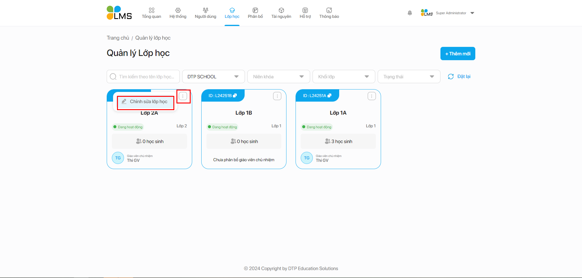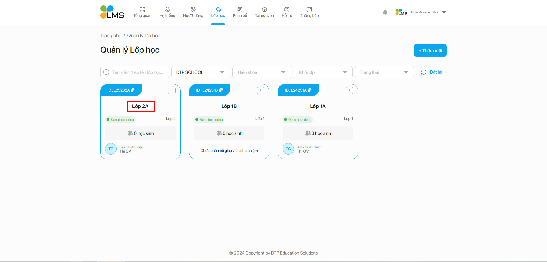 ## 2. Thêm mới lớp học