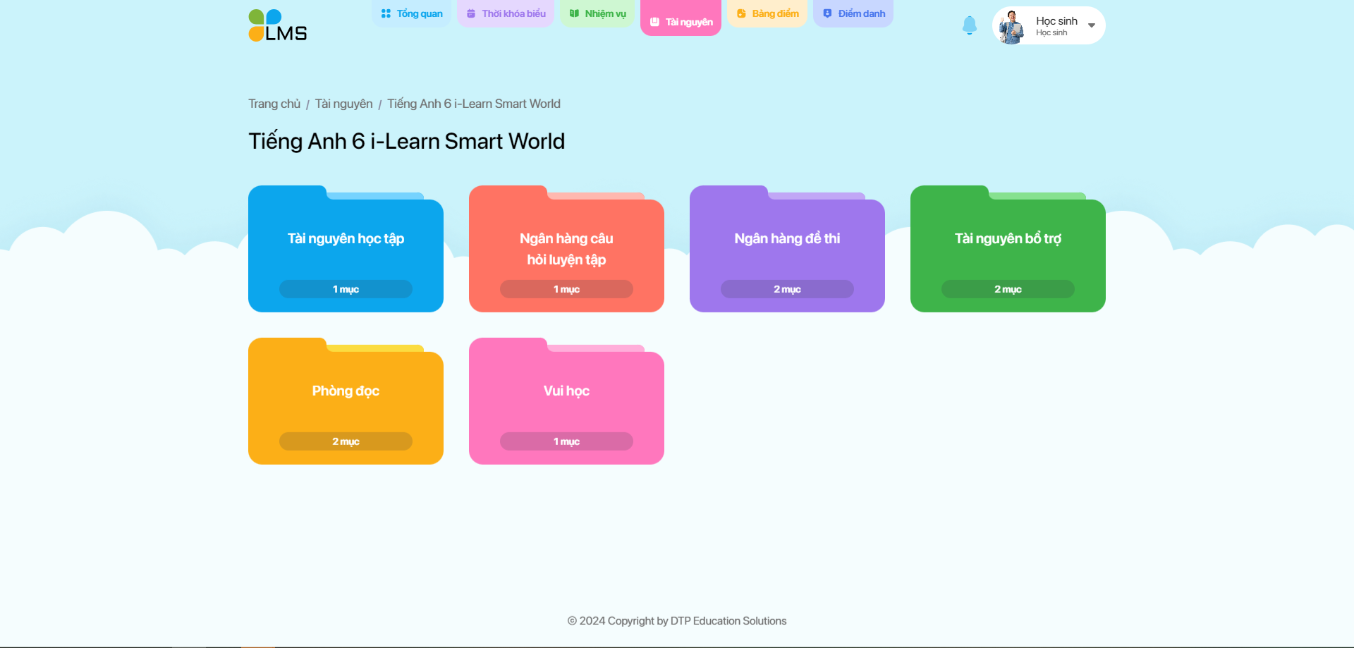 **Bước 2:** Học sinh có thể truy cập vào từng chương trình để xem và sử dụng các tài nguyên được trường cung cấp