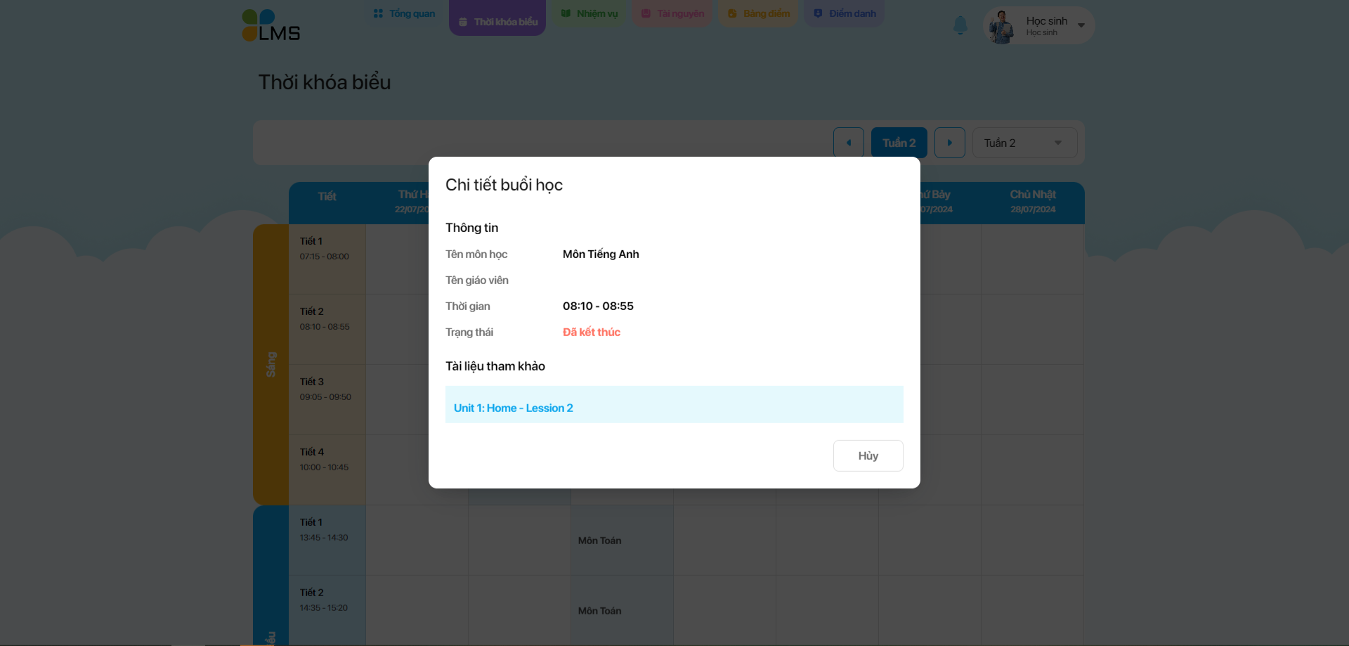 **Bước 2:** Có thể nhấn vào từng tiết học để xem chi tiết thông tin lịch học